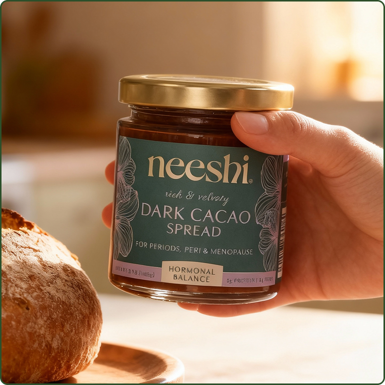 Nourish your body and indulge your senses with our Dark Cacao Spread — crafted to support comfort and balance through every stage, from periods and PMS to perimenopause.